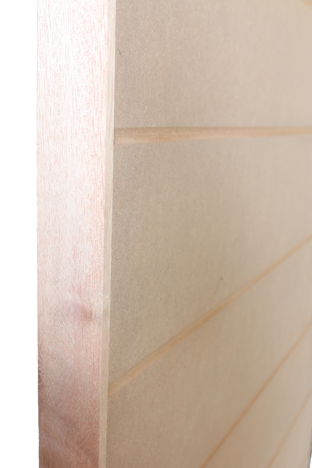 MDF EXPOSED EDGES + SHALLOW HORIZONTAL SQAURE GROOVES