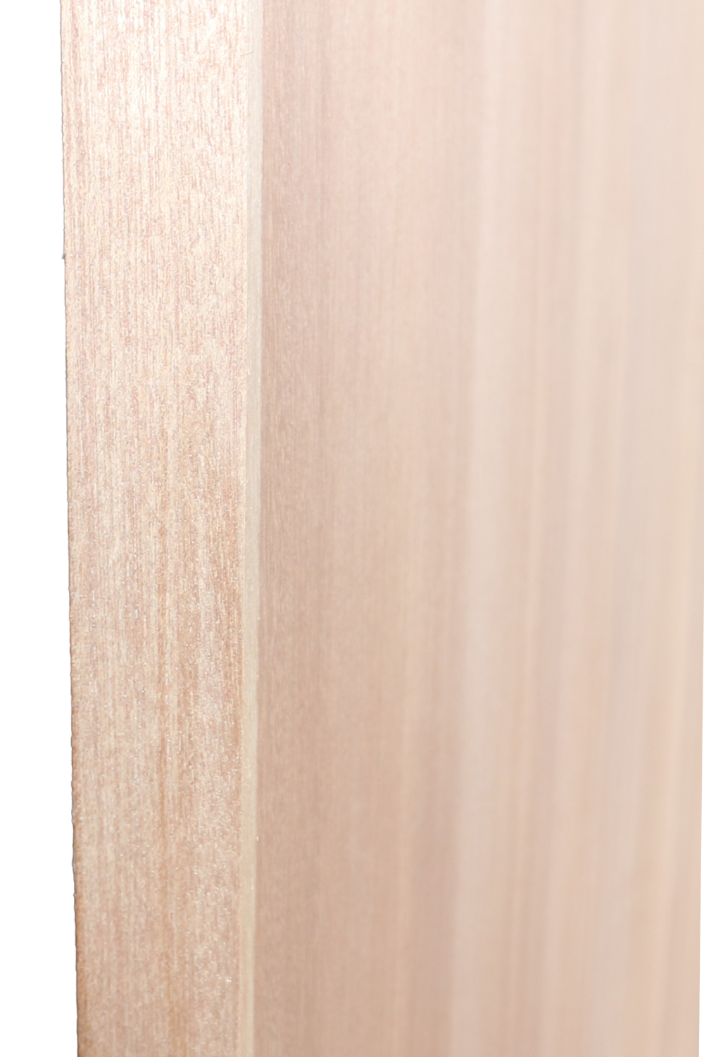 Made up with Sapele veneer pressed on MDF board and 2 Hardwood Concealed edge strips on both sides of the door.