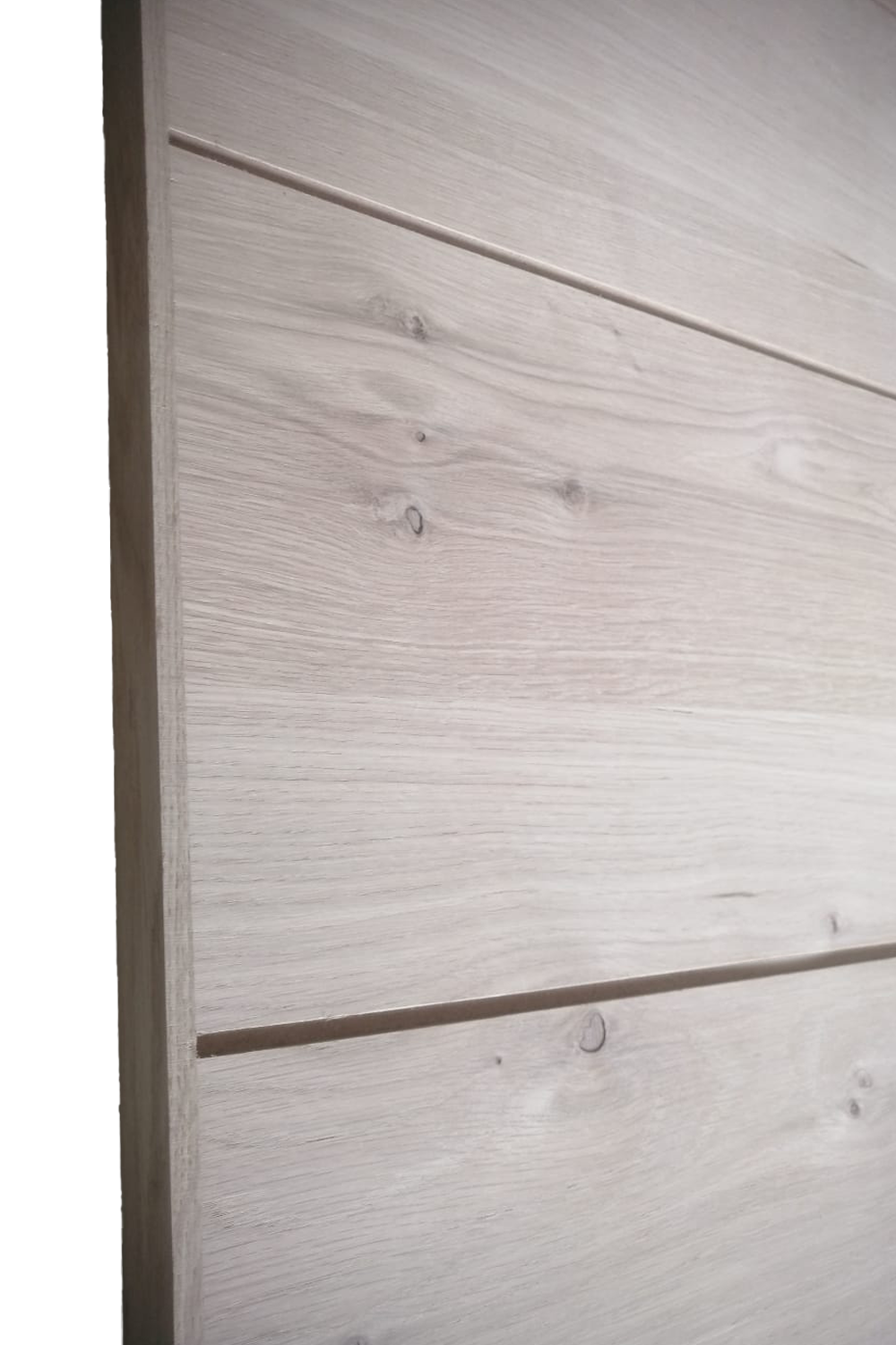 RUSTIC WHITE OAK 2CE DOOR WITH DEEP HORIZONTAL GROOVES